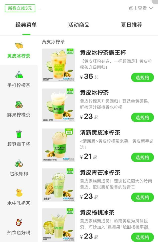 仔细看,不少柠檬类饮品使用的几乎都是香水柠檬。(图/小程序截图)